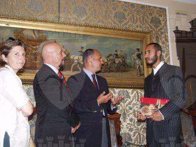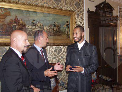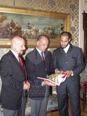 Il vicesindaco Renzo Codarin, Al Saadi Gheddafi jr ed Amilcare Berti presidente dell'US Triestina