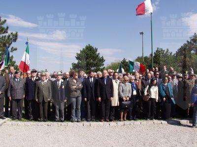 Il gruppo riunito davanti alla foiba: Roberto Dipiazza sindaco, Fabio Scoccimarro presidente della Provincia, Antonietta Vascon presidente del consiglio provinciale, Roberto Menia e Lucio Gregoretti assessori, Paolo Sardos Albertini, Angelo Truzzi segretario del Comitato per i Martiri delle Foibe, Alessia Rosolen, Michele Lobianco, Paolo Giacomelli, Salvatore Porro consiglieri comunali.