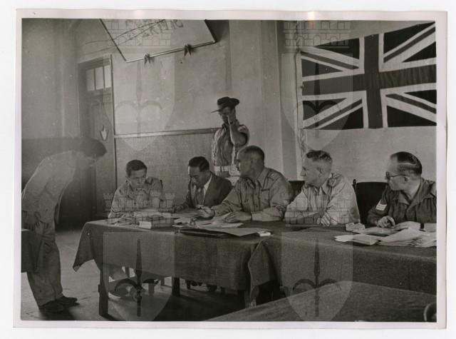 Un giapponese, accusato di attacchi contro le truppe alleate, si presenta davanti alla Corte militare inglese nella città di Kure.