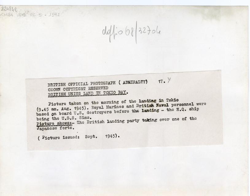 Le truppe britanniche occupano un forte giapponese nella baia di Tokyo.