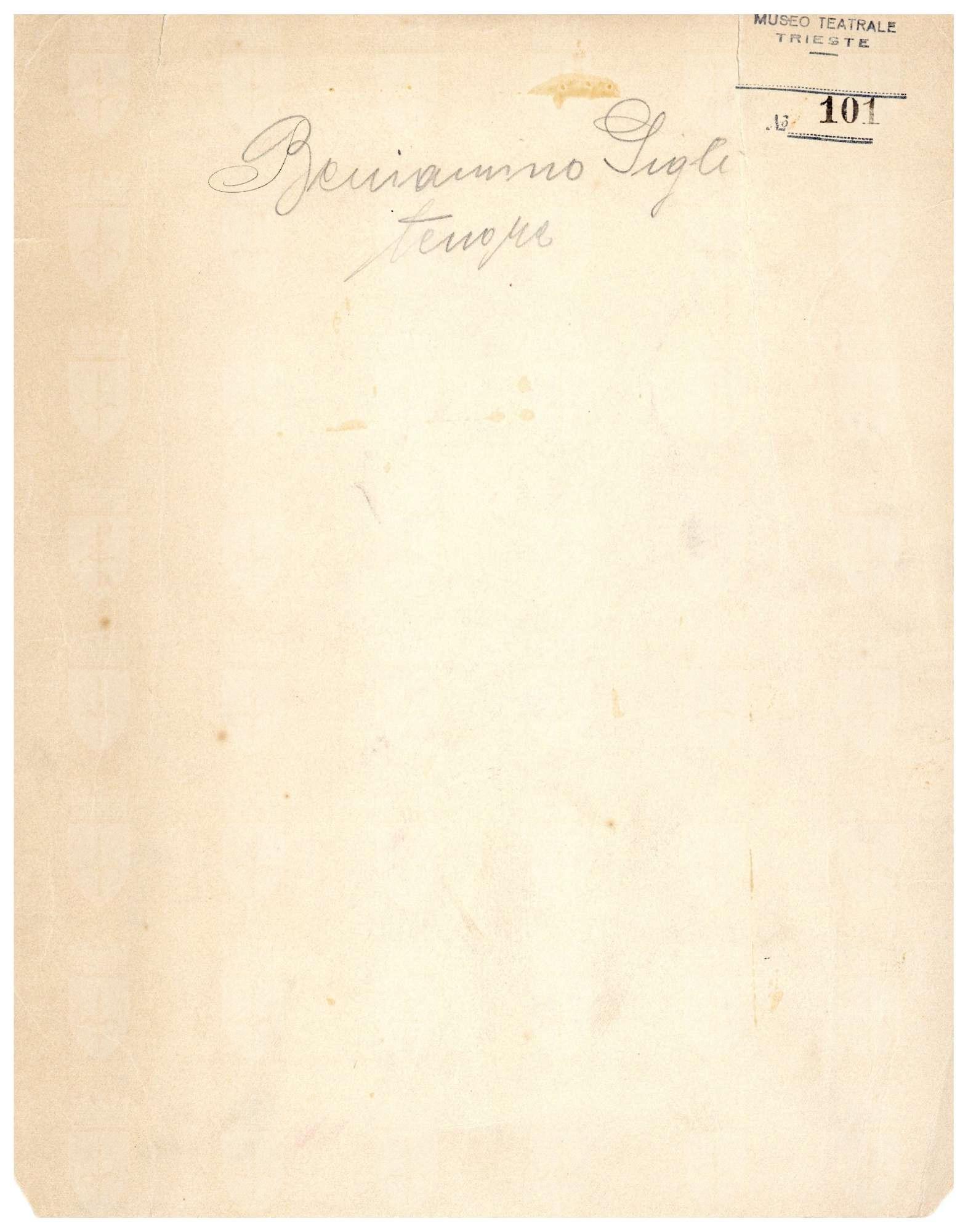 H. Mishkin (1871-1948) nato in Russia è emigrato in America, dove si è specializzato in ritrattistica di artisti lirici; ha lavorato come ritrattista ufficiale del Met dal 1905 al 1932; B.Gigli è qui in costume, a figura intera, mentre interpreta il personaggio del pittore M. Cavaradossi nella "Tosca" di G.Puccini