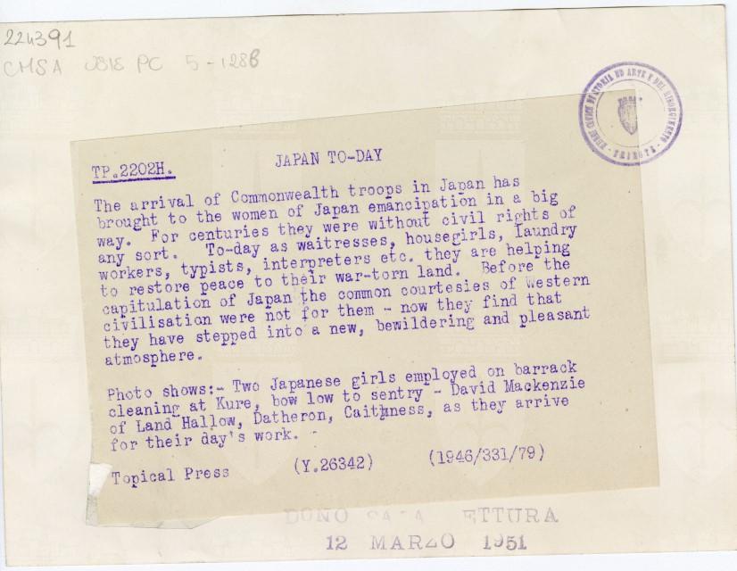 Colecchia Claudia, Peace is here! Fotografie di propaganda degli Americani in Estremo Oriente nel fondo Usis della Fototeca dei Civici Musei di Storia ed Arte, Trieste, 2017, p. 64 Consulta OPAC