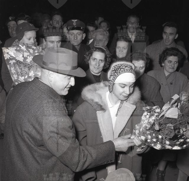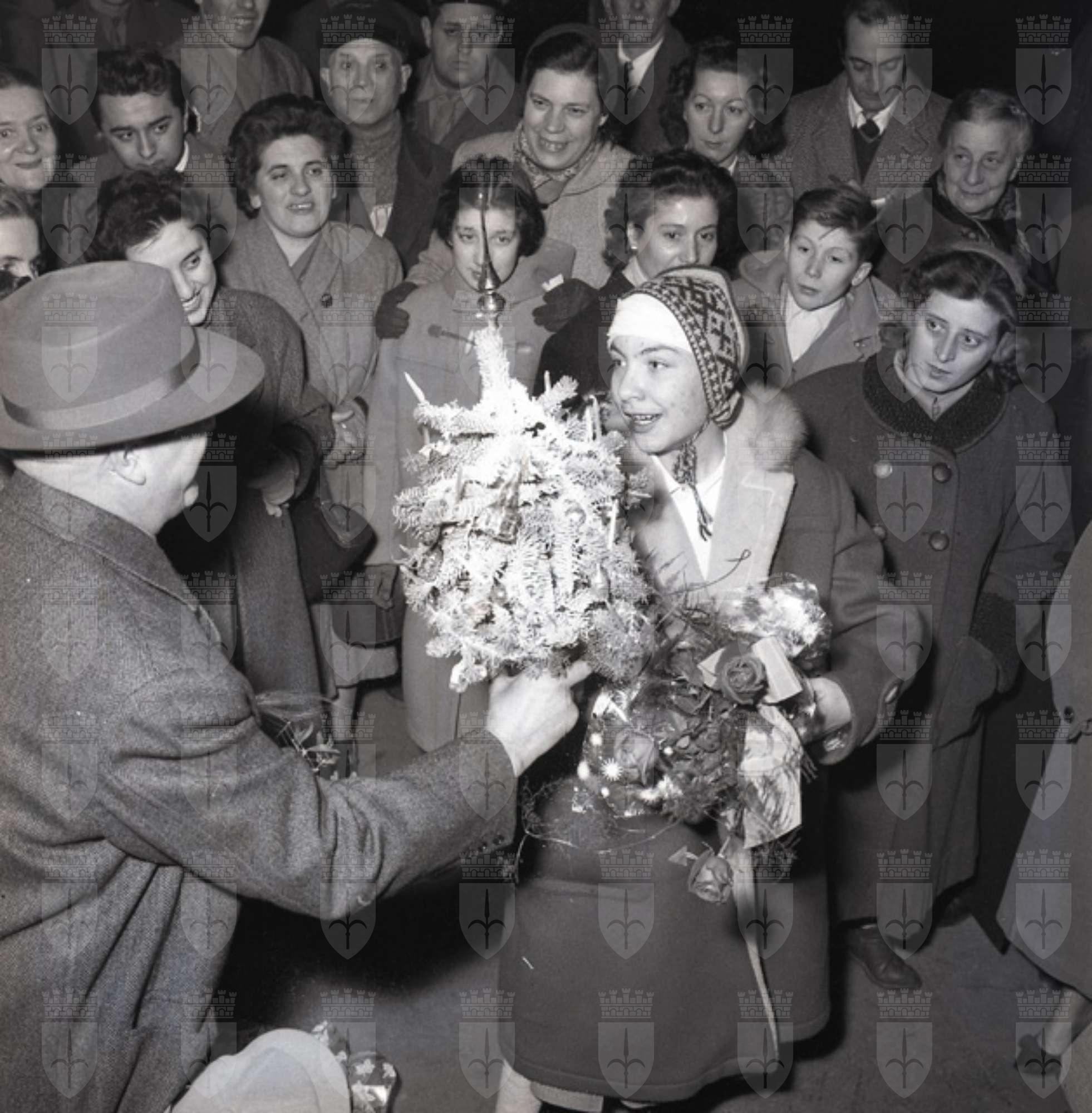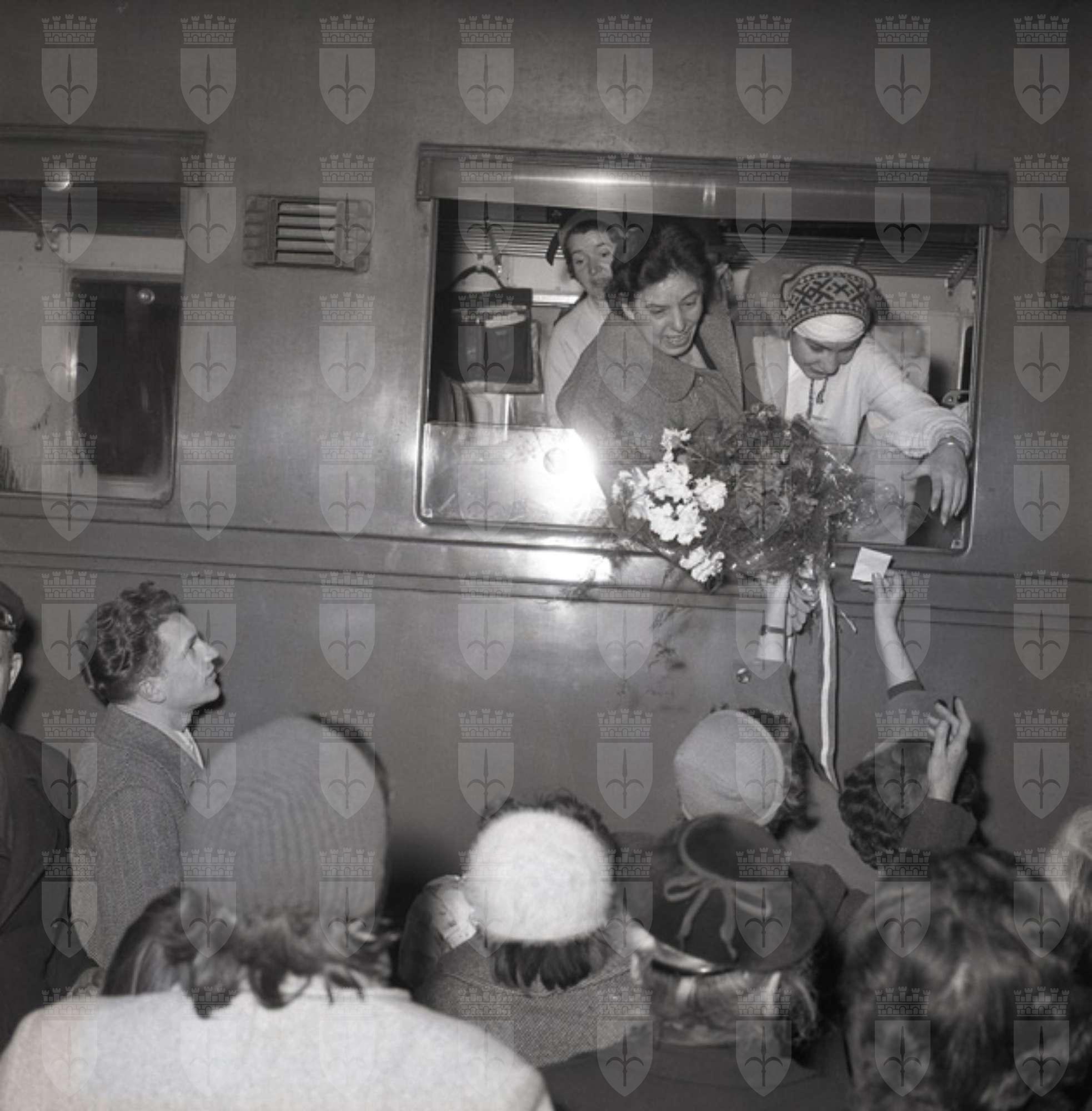 La giovane gradiscana Alessandra Fornasiero rientra da un viaggio a Stoccolma dove è stata operata dal professore Herbert Olivecrona. Con una sottoscrizione il Piccolo finanzia l'intervento che viene descritto nelle pagine del giornale. La documentazione fotografica utilizzata dal giornale è di Giornalfoto. Il servizio di Foto Omnia documenta anche il rientro a Gradisca.