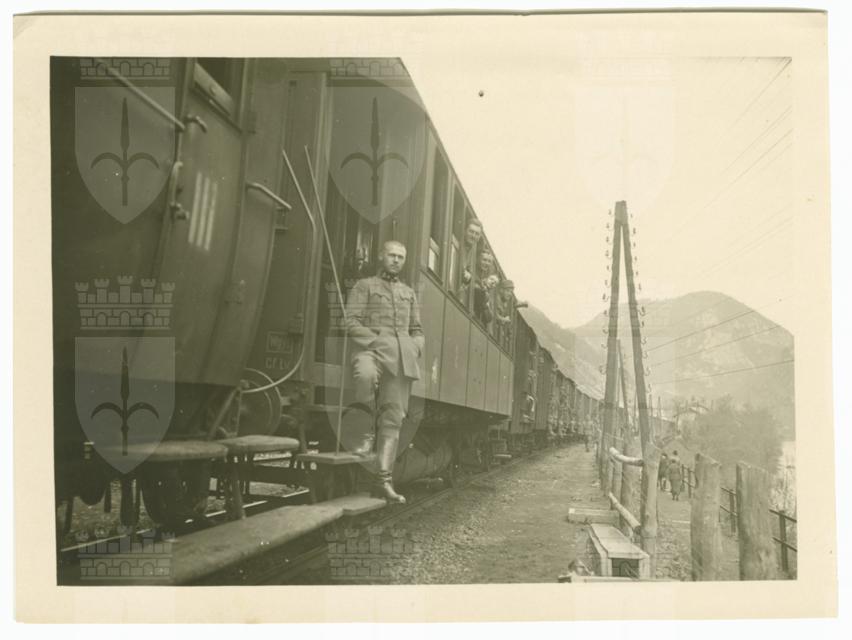Il treno-trasporto, comandato dal capitano Chiachich, che conduce il 12. Reggimento Ulani dalla Romania al fronte del Piave, nel tratto Pragerhof (oggi Pragersko)-Lubiana. Il 5 marzo 1918 la Romania aveva firmato a Buftea, vicino a Bucarest, un trattato di pace preliminare con gli Imperi Centrali, che verrà ratificato poi il 7 maggio col Trattato di Bucarest