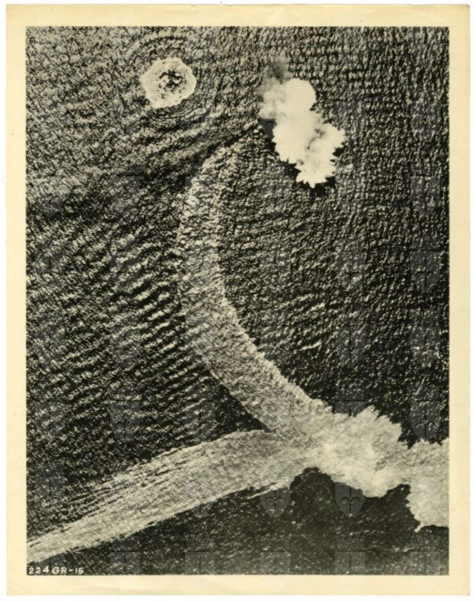 Nell'immagine, ripresa da un aereo in posizione zenitale, è possibile vedere l'effetto di una serie di esplosioni.
