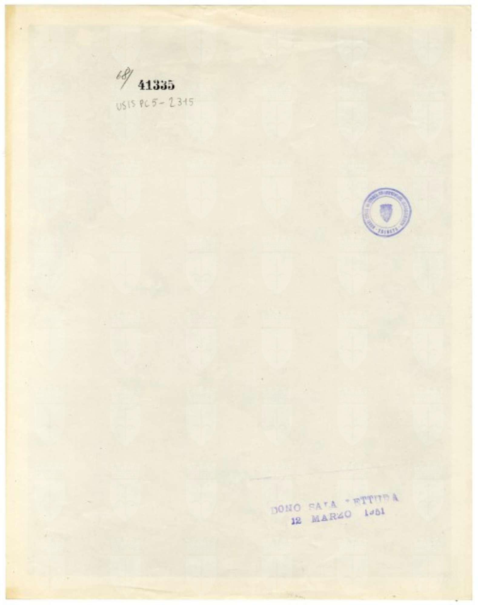 Proprietà Ente pubblico territoriale; Civici musei di Storia ed Arte; donazione; Sala di lettura americana; 1951/03/12