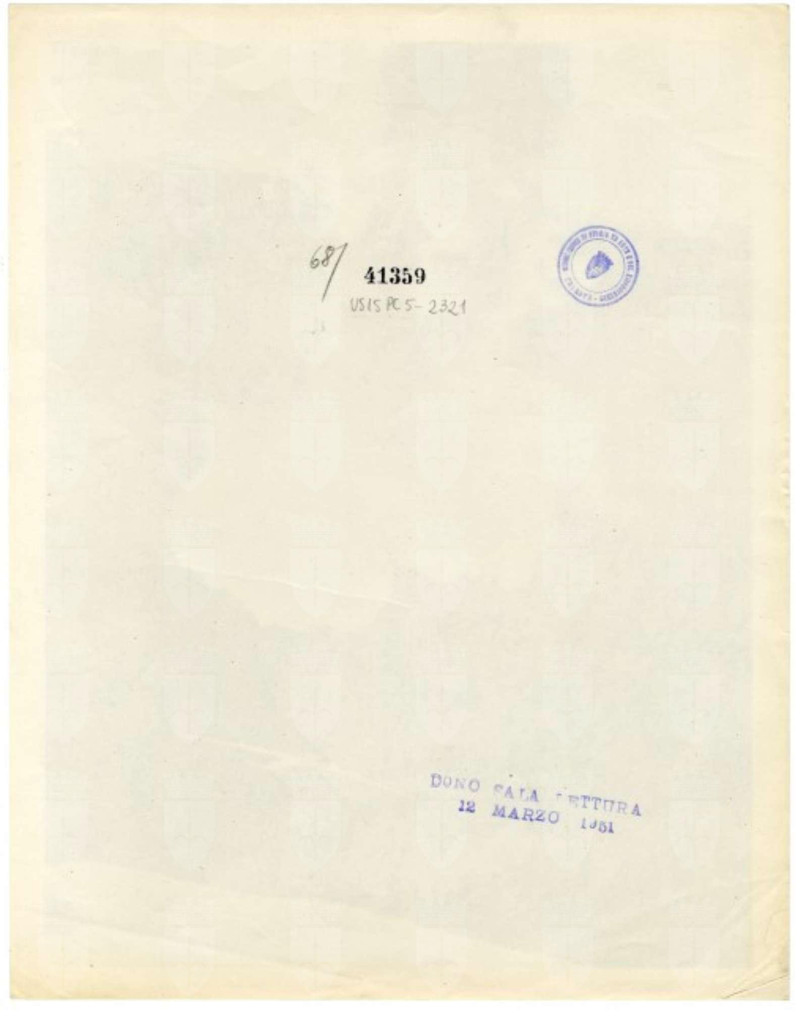 Proprietà Ente pubblico territoriale; Civici musei di Storia ed Arte; donazione; Sala di lettura americana; 1951/03/12