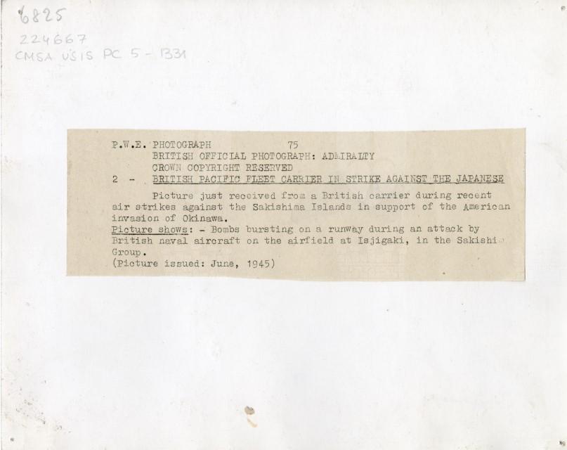 Veduta aerea di un attacco dell'Aviazione britannica sull'aeroporto di Isjigaki, isola del gruppo delle Sakishima, avvenuto nel giugno 1945.