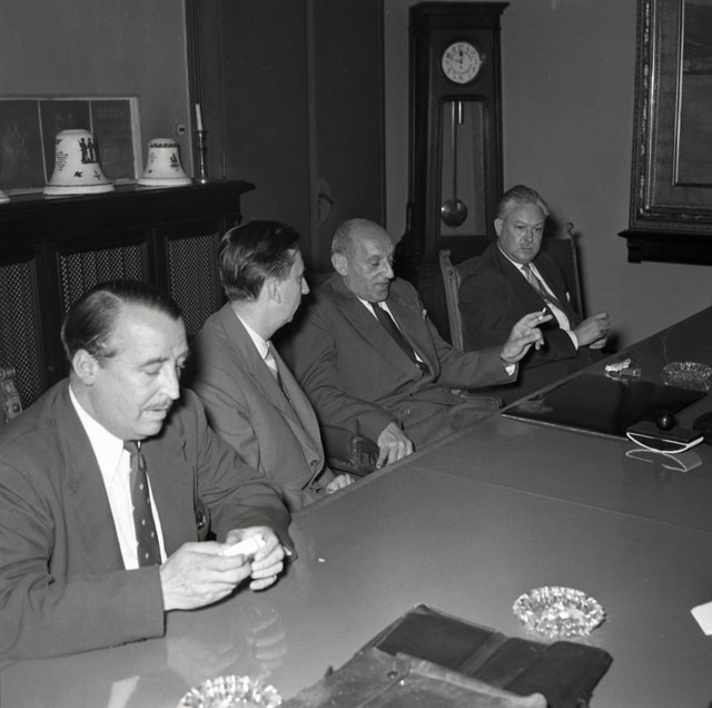 Gerrit Jan van Heuven Goedhart, alto commissario dell'ONU per i rifugiati, esamina i problemi dei profughi balcanici e la situazione dei campi di raccolta di Trieste.
