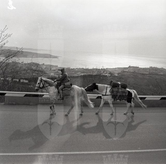 Il colonnello inglese della Royal Air Force, in sella a un magnifico cavallo bianco, giunge a Trieste dall'Inghilterra, intenzionato a raggiungere la Nuova Zelanda.