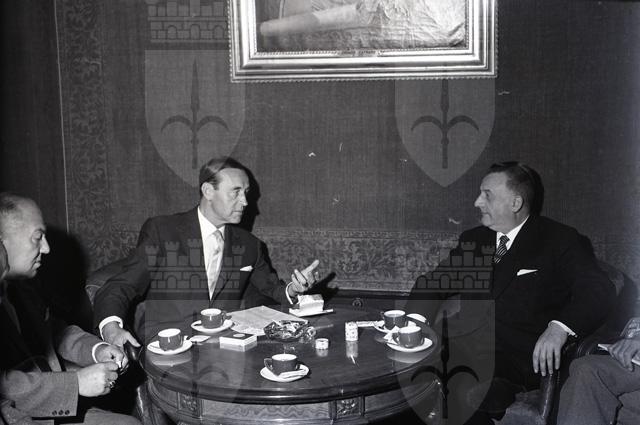 L'ambasciatore Klaiber arriva in città con la nave Saturnia. Accompagnato dal presidente della Camera di commercio Caidassi e dal presidente dell'Ente Fiera Suttora, Klaiber incontra alcuni dei maggiori esponenti della vita economica cittadina. Tratto da Il Piccolo sera del 22.09.1962