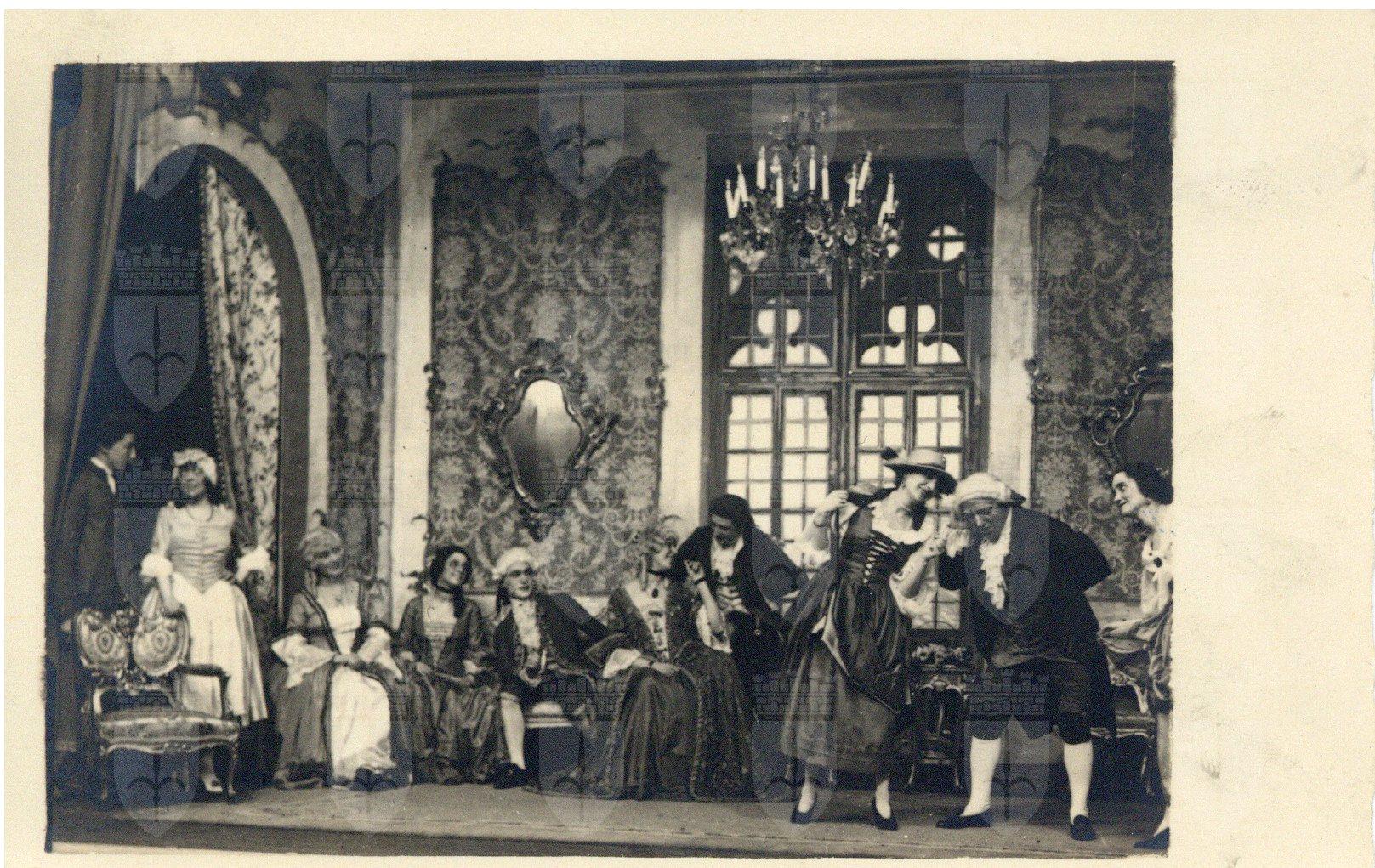 Scene e attori dilettanti della commedia rappresentata dal Circolo Artistico di Trieste dal 4 al 6 aprile 1923, regia di Guido Hermet. Protagonisti: Orazio Sturli, Livia Rimini, Mariuccia Gerussi, Fabio Venezian, Dolores Tarabocchia, Aurelio Zuculin, Bice Randegger Richetti, Nanà Orel-Held, Alberto Riccoboni