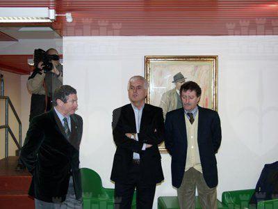 L'assessore Paris Lippi assieme ai figlii dell'allenatore Bruno e Tito nel corso della conferenza stampa tenutasi allo stadio Nereo Rocco
