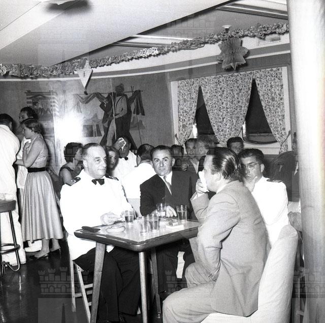 Riprese di un ballo mascherato in classe turistica a bordo della Motonave Africa.