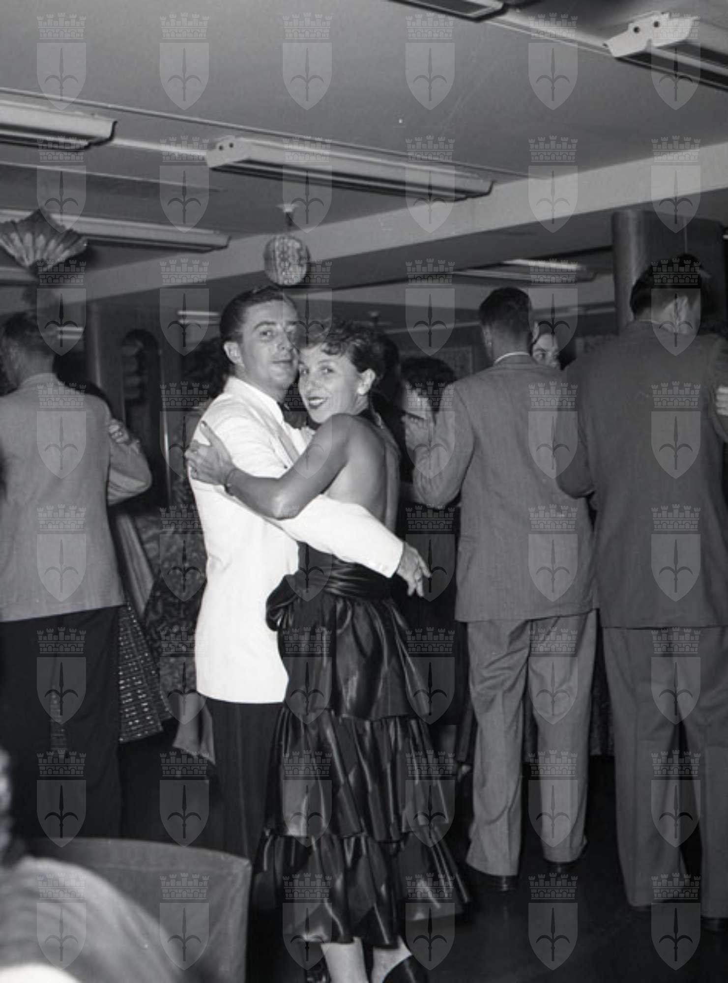 Croceristi ripresi a bordo della Motonave Africa. Gli interni della nave: la sala da ballo.