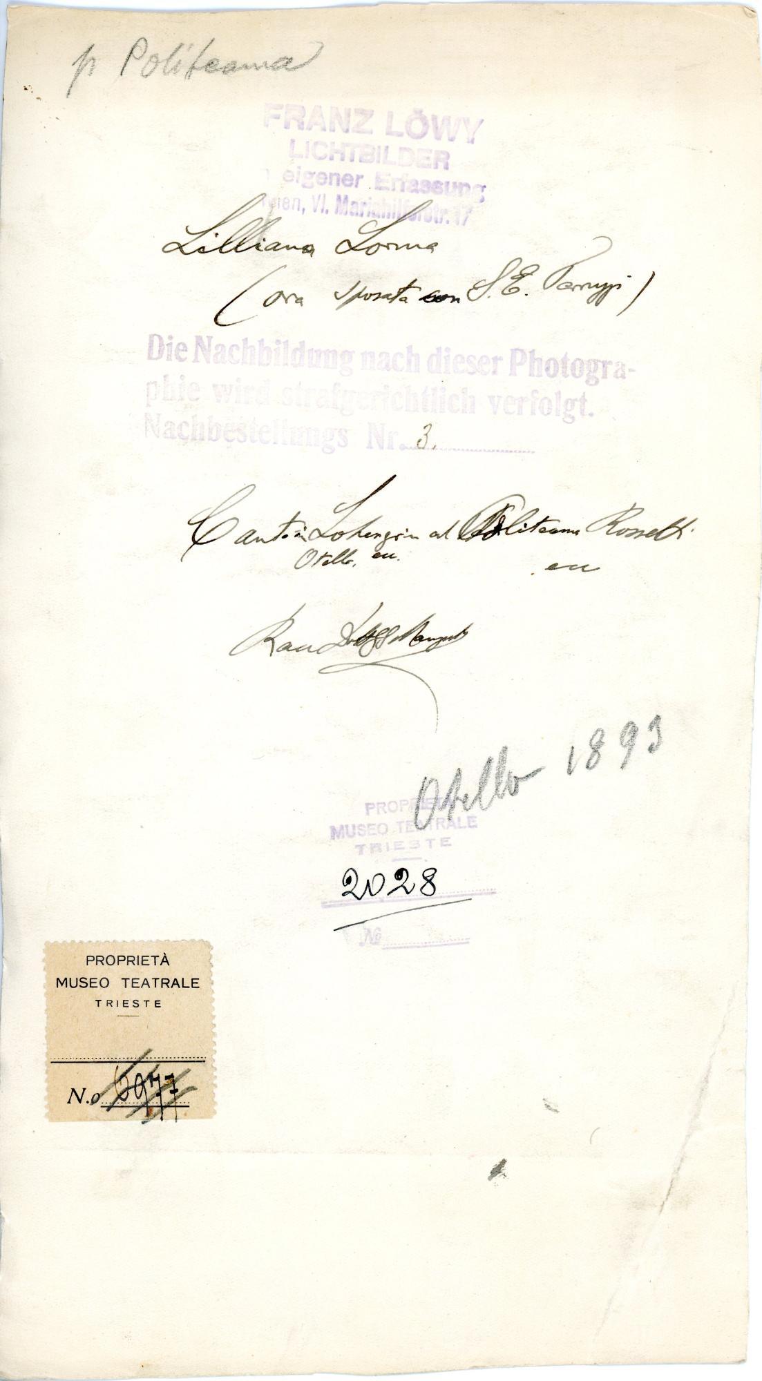 Proprietà Ente pubblico territoriale; Civico museo teatrale C. Schmidl