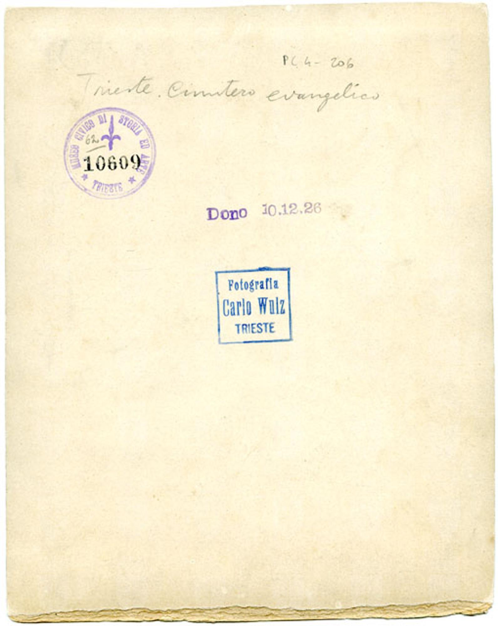Proprietà Ente pubblico territoriale; Civici musei di Storia ed Arte; donazione; Wulz, Carlo; 1926/12/10