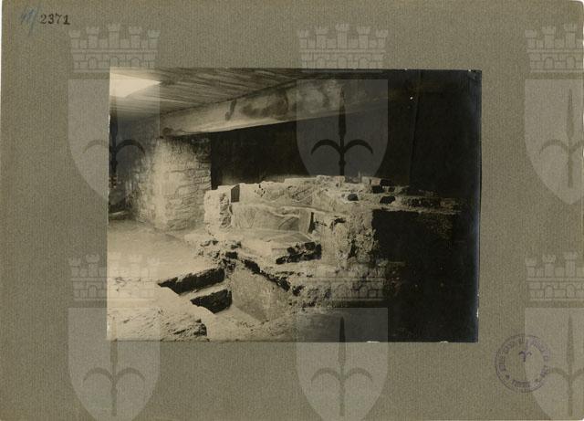 Basilica di Aquileia, resti della vasca battesimale situata nella cosiddetta "cripta degli scavi". La vasca fu costruita nel periodo post-teodoriano, verosimilmente nella metà del IV secolo, accanto dell'aula nord del complesso basilicale, ingrandita nello stesso periodo per contenere un numero crescente di fedeli. La vasca presentava forma esagonale ed era rivestita in lastre marmoree.