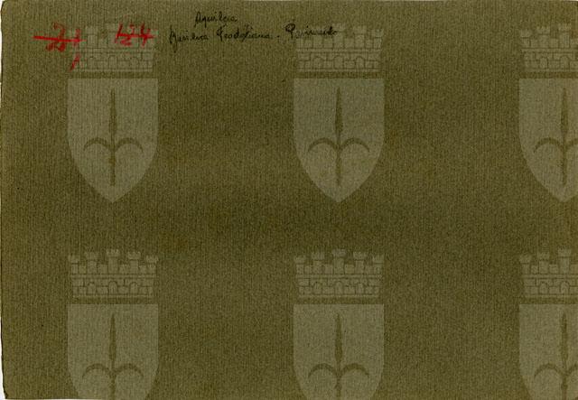 Aula Nord della Basilica teodoriana di Aquileia costruita dal Vescovo Teodoro all'inizio del IV sec. d.C., poco dopo l'editto di Costantino (313 d.C.). La foto ritrae la porzione centrale dell'aula, nel settore compreso tra il perimetrale nord e le fondazioni del campanile costruito dal patriarca Poppone all'inizio dell'XI secolo, in un'epoca successiva alla stesura del mosaico. Il pavimento mostra una composizione ortogonale di ottagoni irregolari e di croci adiacenti, con le croci ornate da trecce, gli esagoni da un fiorone composito di petali affusolati e loti trifidi e gli ottagoni campiti da motivi figurati di vario tipo. I resti dell'aula nord furono messi in luce negli anni della prima guerra mondiale e poco dopo la fine del conflitto furono protetti da una copertura in cemento armato.