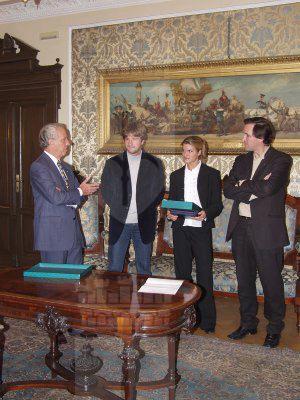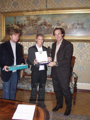 L'assessore comunale Roberto Menia ed il Presidente dell'Aiat di Trieste Franco bandelli con la neo campionessa mondiale Tanja Romano nel salotto azzurro del Municipio