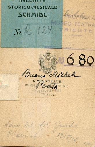 Proprietà Ente pubblico territoriale; Civico museo teatrale C. Schmidl; donazione; Hermet, Guido; 1918