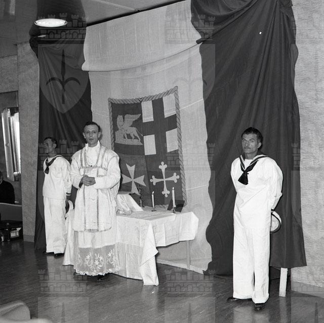 Celebrazione della Messa sulla nave Motonave Victoria.