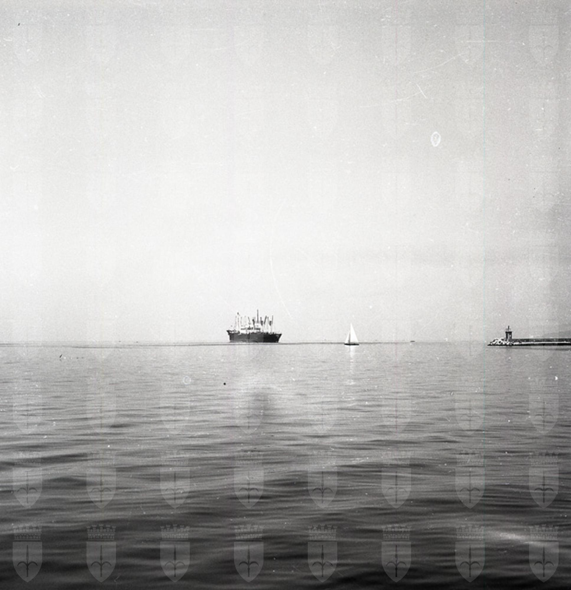 La motonave Loide Bolivia del Lloyde Brasileiro, con un carico di 40.000 sacchi di caffè è ormeggiata dinanzi all'Hangar 51 per le operazioni di scarico. (Il Piccolo, 28 e 29 luglio 1959)