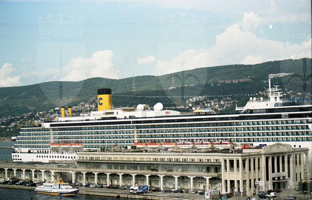 Stazione marittima, nave crociera, Costa Atlantica. Fuochi d'artificio, rive di Trieste, notturni, pescheria, foto artistiche, turisti, pullman.