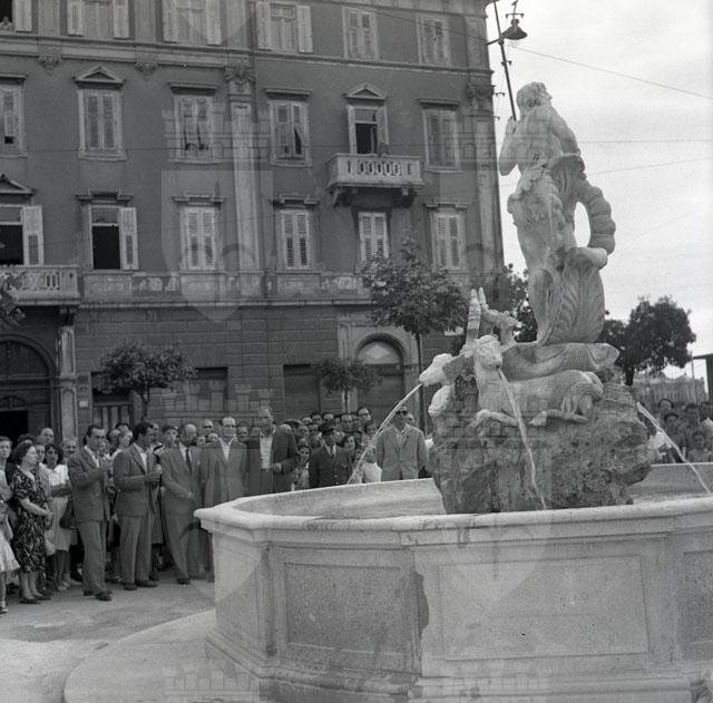 Inaugurazione della nuova ricostruzione della fontana, opera di Giovanni Mazzoleni, a cura dello scultore Nino Spagnoli (cfr. Trieste 1900-1999. Cent'anni di storia, v. 6, p. 189)