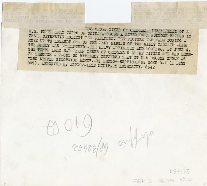 La fanteria statunitense attraversa un fiume su un ponte costruito con delle barche e continua la sua offensiva contro i giapponesi sull'isola di Okinawa.