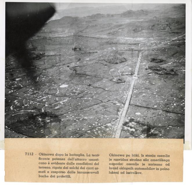 Veduta aerea di Okinawa dopo i bombardamenti aerei americani.