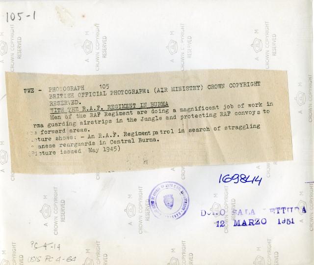 Guerra mondiale 1939-1945 - Partecipazione dei Soldati inglesi - Birmania