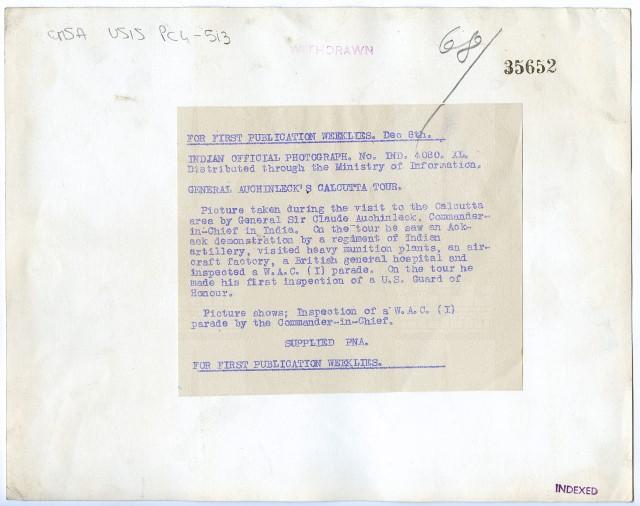 Visita del Generale Claude Auchinleck, comandante in capo in India. La foto rappresenta una parata del W.A.C.