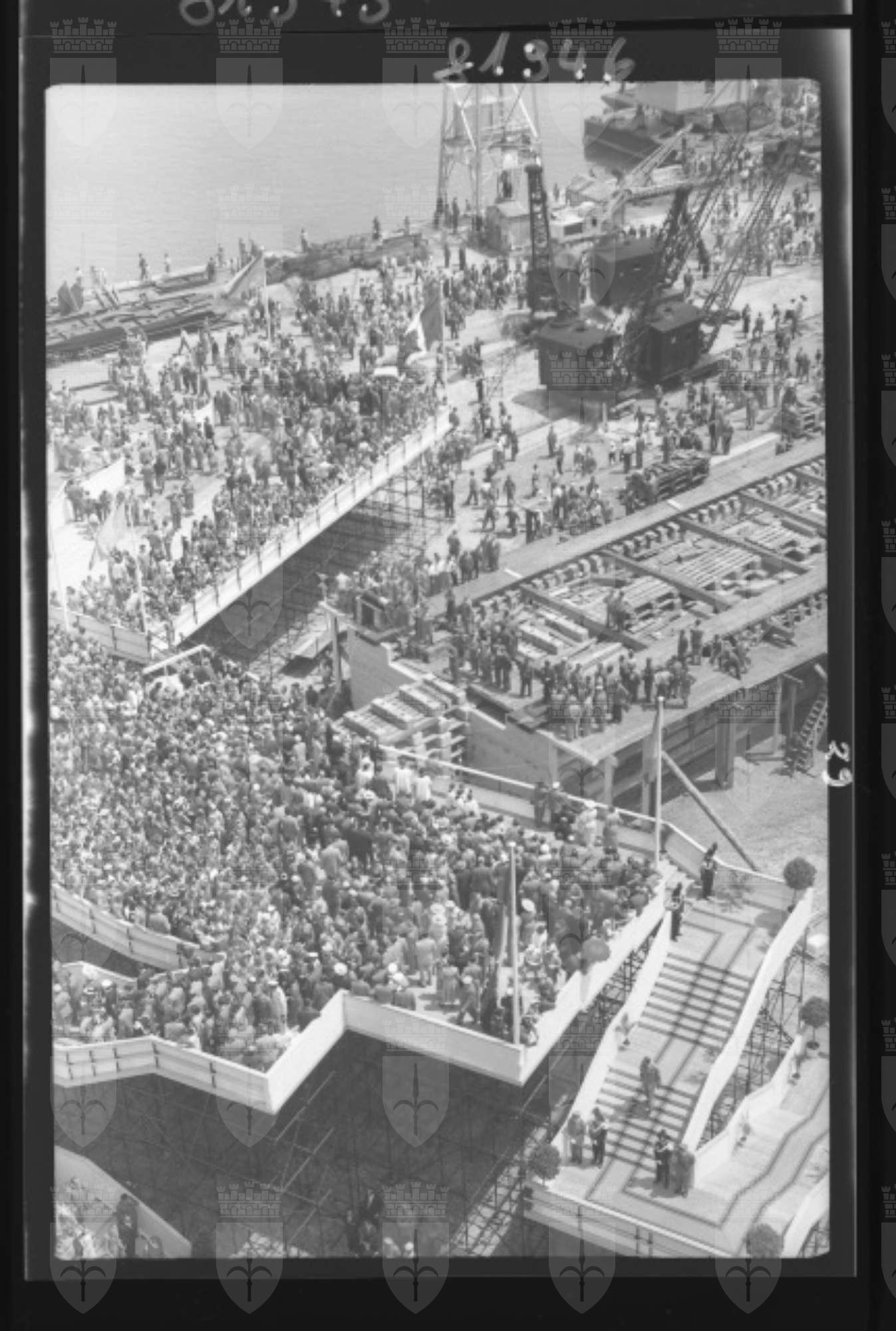 Varo della turbocisterna: Mirella d'Amico, una delle più grandi petroliere europee, alla presenza del Ministro della marina mercantile Paolo Cappa. Madrina dell'evento Mirella d'Amico, moglie dell'armatore Ciro d'Amico (dal Giornale di Trieste, 14-15.06.1953)