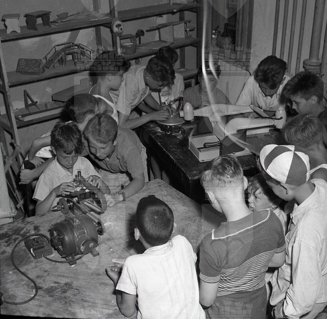 Ragazzi ripresi accanto a macchine utensili