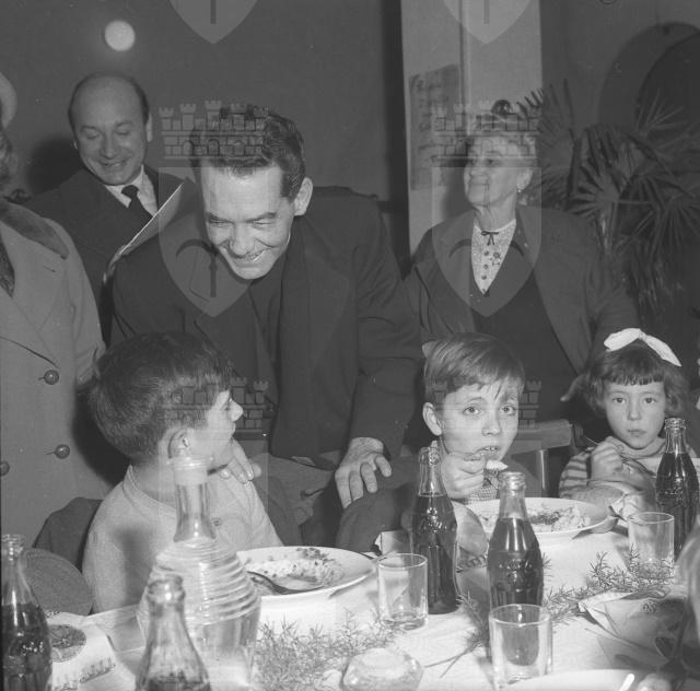 Oltre 700 bambini di eta inferiore ai 12 anni, profughi giuliano-dalmati, appartenenti alle classi piu indigenti, partecipano ad un pranzo natalizio offerto dal locale Ente organizzatore dell'Amministrazione per gli aiuti internazionali, nei locali della mensa comunale di via Gambini
