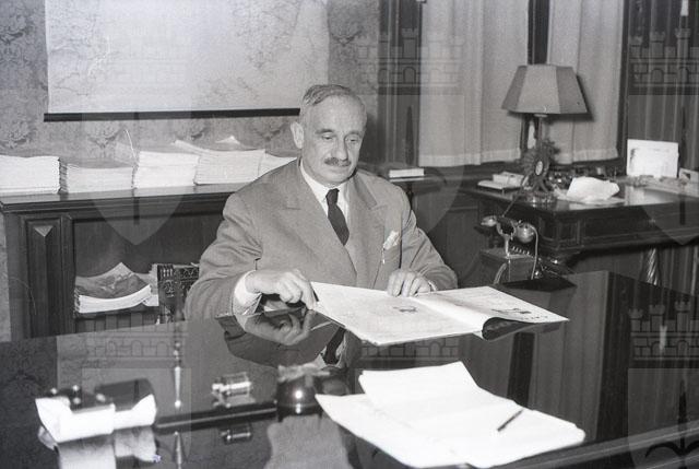 L'ingegner De Antonellis, direttore dell'Ispettorato della motoraizzazione di Trieste, è ripreso mentre sfoglia la rivista Tuttoscooter.