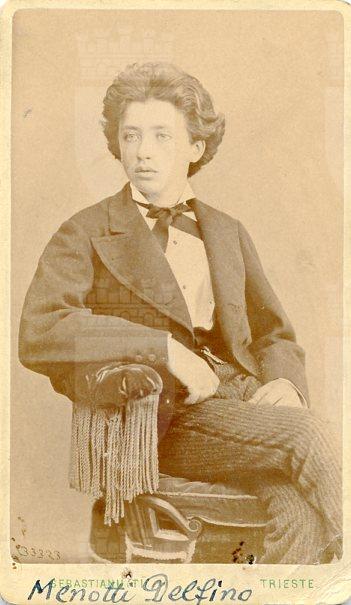 Nato a Fiumicello, Domenico Giovanni Battista Menotti, in arte Delfino Menotti, su consiglio di F. Faccio, intraprese gli studi musicali prima a Milano presso la scuola del maestro A. Sangiovanni poi a Trieste, dove riprese gli studi con G. Rota. Venne arrestato perché trovato in possesso di una lettera compromettente per G. Oberdan. Rimase in carcere cinque mesi, quindi venne processato e condannato a sei settimane di detenzione e all'esilio./pNel 1880 debuttò al teatro alla Pergola di Firenze nella Linda di Chamounix di G. Donizetti. Venne poi scritturato dal Colón di Buenos Aires, e Giuseppe Verdi, che lo aveva ascoltato a Milano, gli inviò lo spartito del Simon Boccanegra perché ne fosse il primo interprete in Argentina. Dopo una intensa attività nelle Americhe, in Europa e Russia, nel 1904 fu chiamato ad Odessa, per insegnare canto presso il conservatorio; qui sposò una sua allieva, Antonida Trouien. Nel 1920 Si stabilì a Trieste dove gli fu offerta la cattedra di canto presso il locale conservatorio e dove divenne anche direttore artistico del Teatro Verdi.