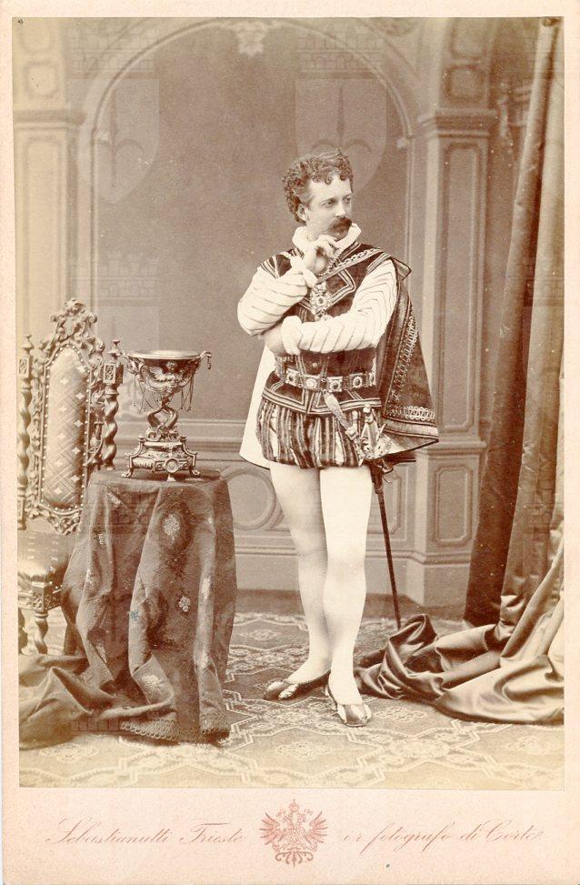 In costume nel ruolo di Nevers negli "Ugonotti" 1877. A Trieste si è esibito al Teatro Comunale nel 1877 in "Gli Ugonotti", nel 1908, nel ruolo del titolo, "Il Battista", e nel 1912 in "Don Pasquale" e "L'elisir d'amore"; nel 1910 al Politeama Rossetti nel ruolo di Scarpia nella "Tosca"