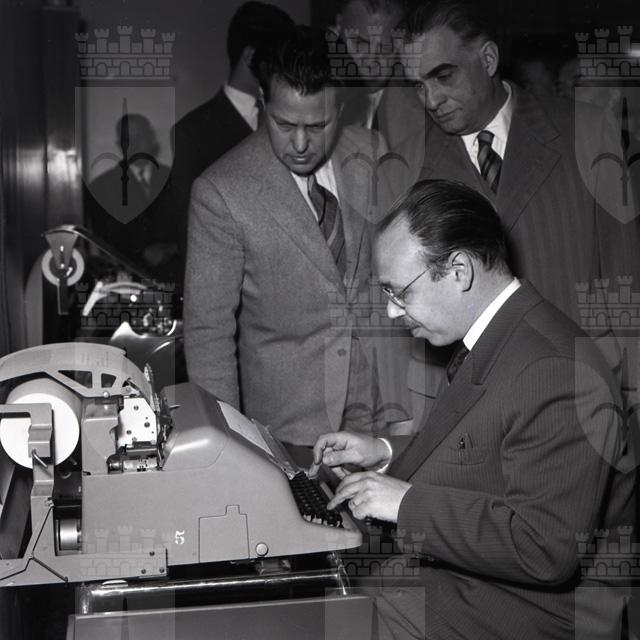 Il Ministro delle Poste e Telecomunicazioni onorevole Gennaro Cassiani, accompagnato dal sottosegretario onorevole Vigo, dal capo di Gabinetto dott. Arcieri, dal direttore generale delle Poste e Telecomunicazioni ing. De Catarini, ha inaugurato la nuova sala di accettazione telefonica al Palazzo delle Poste. Presenti alla cerimonia i rappresentanti delle autorità cittadine. Cassiani ha inoltre visionato i nuovi impianti per il collegamento Telex che entrerà in funzione a breve in collegamento con Vienna e ha annunciato il prossimo inizio dei lavori per la costruzione di trenta appartamenti per il personale postelegrafonico con lo stanziamento di cento milioni di lire più altri benefici per la categoria. Notizie tratte da Il Piccolo sera del 18.04.1955