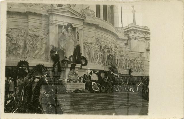 Le ghirlande intorno al loculo del "Milite Ignoto" sul Monumento della Patria : Roma 4 novembre 1921