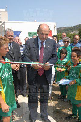 Il sindaco Roberto Dipiazza taglia il nastro alla presenza dell'assessore Giorgio Rossi, di Stelio Borri Presidente del Comitato Provinciale di Trieste del CONI, dei consiglieri comunali Franco Bandelli e Piero Camber e del consigliere provinciale Ettore Rosato