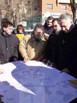 L'assessore comunale Giorgio Rossi con i consiglieri comunali Piero Camber, Roberto Decarli, Franco Ferrarese, Michele Lobianco, Alessandro Minisini, Silvana Moro, Fabio Omero, Salvatore Porro, Alberto Russignan ed Andrea Vatta durante il sopralluogo.