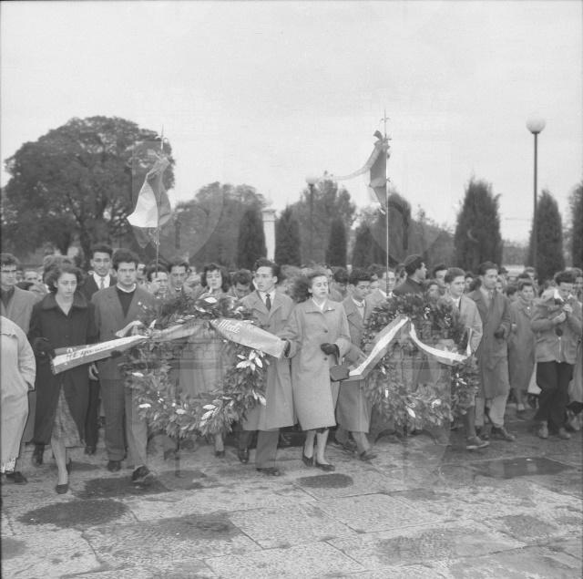 Il vescovo Santin benedice il labaro del Circolo studenti medi e quello del Movimento amicizie giovanili, al suo secondo anno di attivita. Madrina della manifestazione Marisa Bartoli, figlia del Sindaco