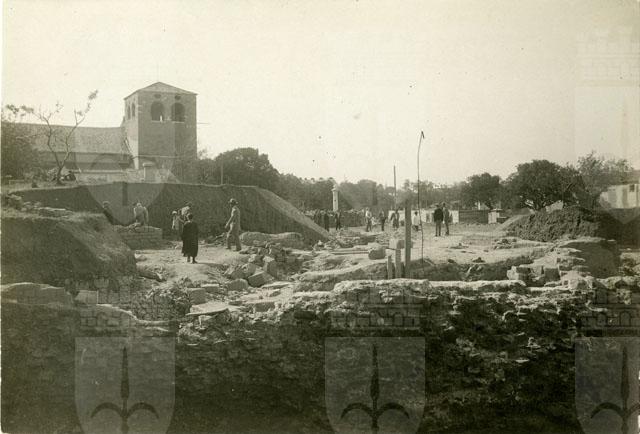 In mezzo alla platea il prof. Piero Sticotti, in giacca bianca, che dirige gli scavi.