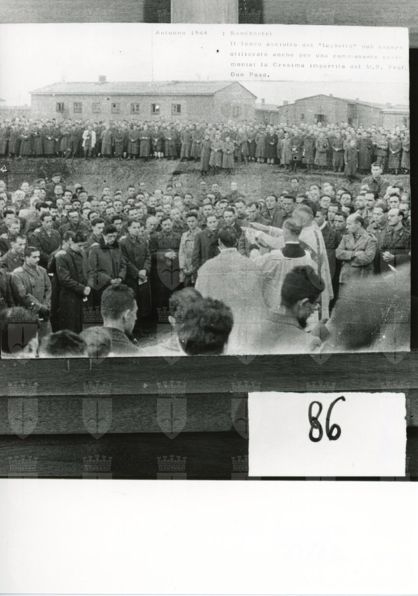 Autunno 1944: Sandbostel/ Il fondo asciutto del “laghetto” può essere utilizzato anche per una commovente cerimonia: la Cresima impartita dal M.R. Prof Don Pasa.