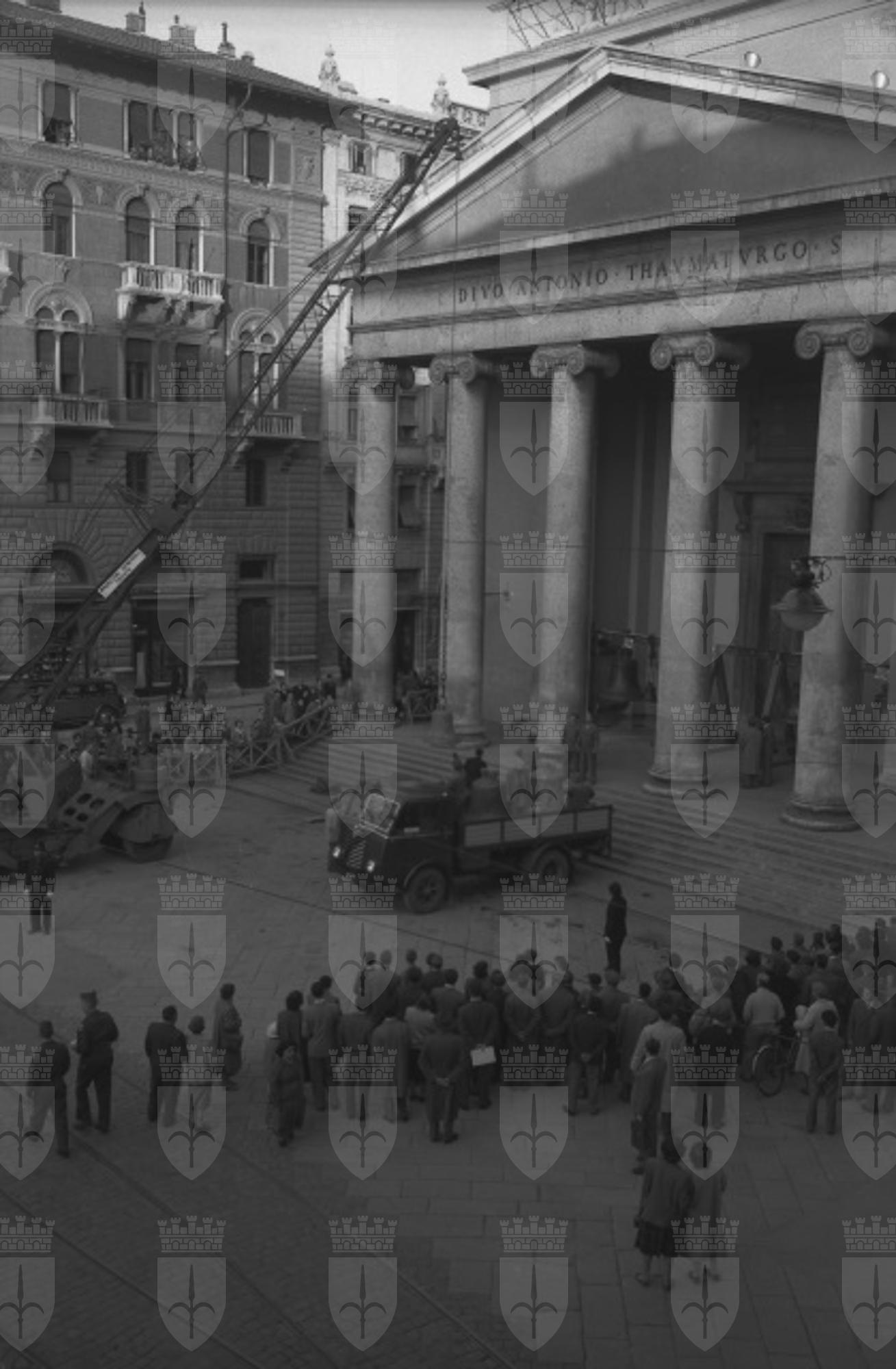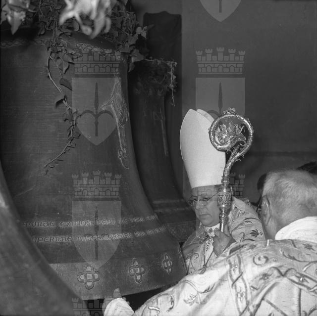 Quarantasette nuove campane, in sostituzione di quelle requisite o distrutte durante la guerra, vengono benedette dal vescovo Santin davanti alla Chiesa di Sant'Antonio Taumaturgo