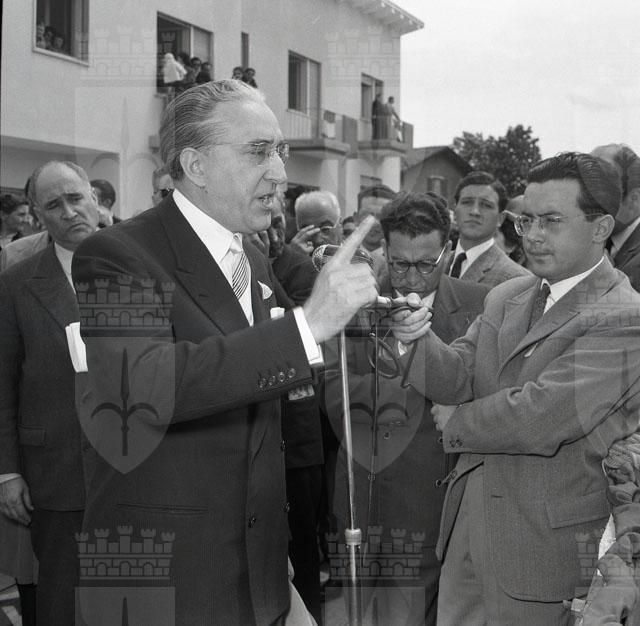 In località Chiarbola superiore, alla presenza del vescovo mons. Santin, di tutte le autorità locali e del sottosegretario alla presidenza del Consiglio on. Scalfaro, ha avuto luogo l'inaugurazione del Villaggio giuliano e dalmata realizzato dall'Opera per l'assistenza ai profughi giuliani e dalmati (da: Il Corriere dei Trieste, 9 maggio 1954). Nell'occasione viene scoperta una targa in memoria di Oscar Sinigaglia, morto l'anno precedente, già fondatore e presidente dell'Opera profughi. L'inaugurazione fa seguito ad un'altra cerimonia svoltasi in onore di Teodoro Mayer, con lo scoprimento di una lapide nello stabile di via San Francesco 4 (da: Trieste 1900-1999. Cent'anni di storia, v. 6, p. 284).
