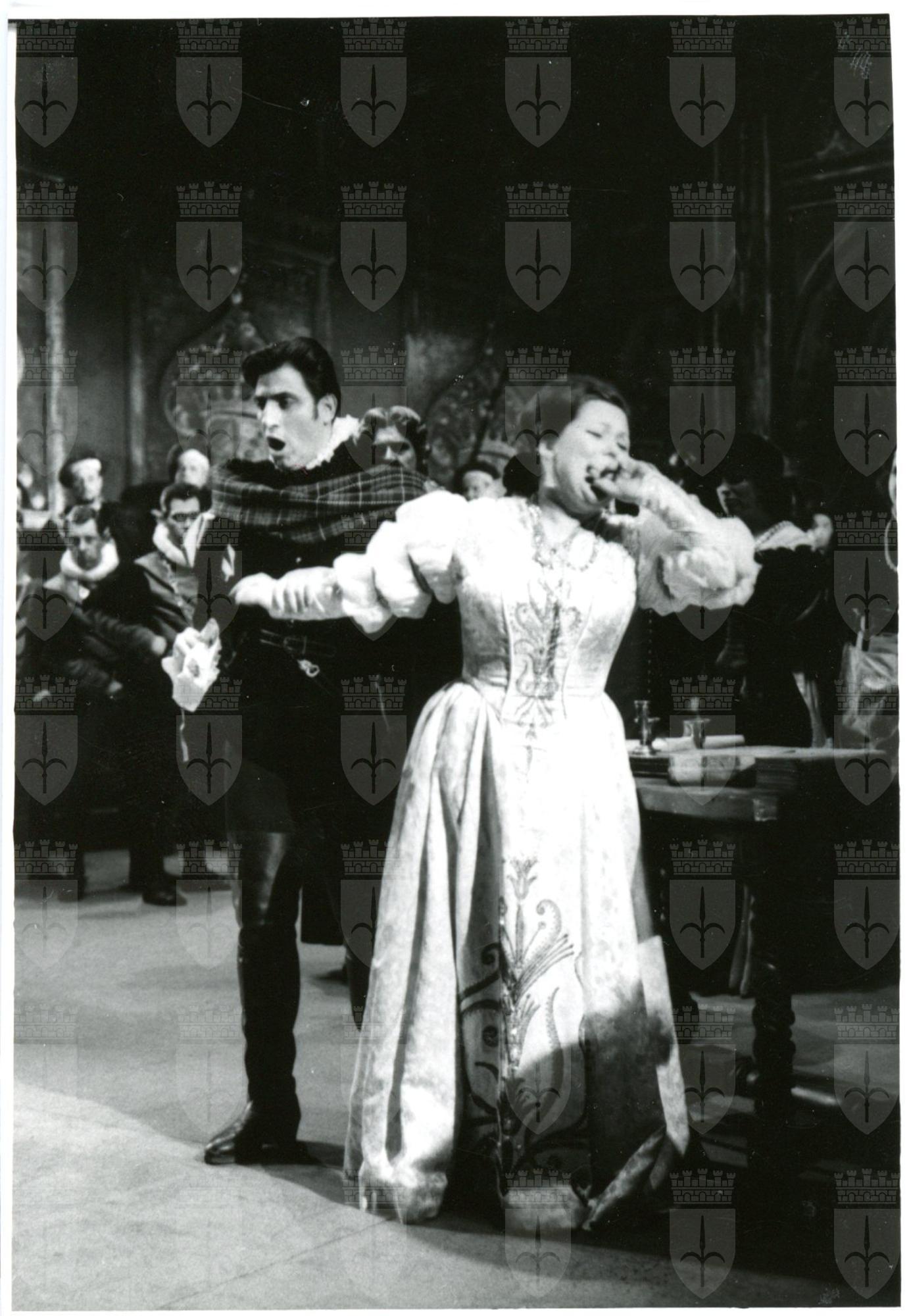 Renata Scotto nel ruolo di Lucia e Renato Cioni nel ruolo di Sir Edgardo in Lucia di Lammermoor rappresentato al Teatro Verdi di Trieste nel febbraio del 1964