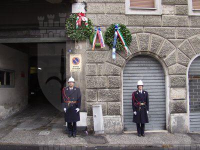 L'assessore Fulvio Sluga ed il consigliere Silvano Magnelli commemorano con corone d'alloro le targhe ai Caduti del '53, ai Caduti del 5 maggio '53, la targa Beltramini '45, le targhe ai Caduti antinazisti del '44 ed ai 41 martiri antifascisti del '44
